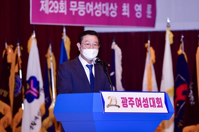 행사에는 이용섭 시장과 김용집 광주시의회의장, 장휘국 광주시교육감, 조석호·정순애 광주시의회 부의장, 광주여성단체협의회 소속 22개 단체 및 자치구 회원 등이 코로나19 방역수칙을 준수하며 참여했다.
