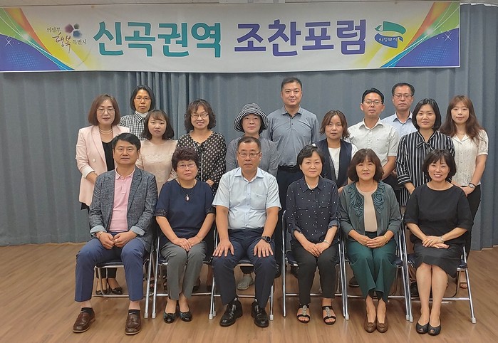 경기 의정부시 신곡권역은 최근 신곡1동 행정복지센터 3층 다목적실에서 ‘희망넝쿨단 희망지기’를 활용한 복지 서비스 연계 활성화 방안을 주제로 '제515차 신곡권역 조찬포럼'을 개최했다. 사진은 포럼에 참여한 관계자들이 기념촬영을 하는 모습.(사진제공=의정부시청)