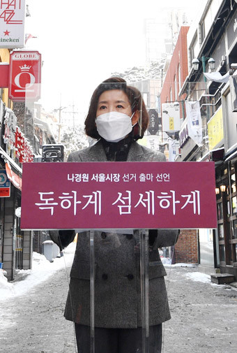 국민의힘 나경원 전 의원이 13일 서울시장 보궐선거에 나섰다. 2011년 이후 10년 만의 재도전이다. 나 전 의원은 이날 오전 시장 출마 선언문에서 “야권의 서울시장 선거 승리로 불의와의 결별을 선언하고 공정과 정의를 되찾아야 한다”며 출마를 공식 선언했다. 그러면서 국민의당 안철수 대표를 겨냥해 “쉽게 물러서고 유불리를 따지는 사람에겐 이 중대한 선거를 맡길 수 없다”며 “중요한 정치 변곡점마다 결국 이 정권에 도움을 준 사람이 어떻게 야권을 대표할 수 있단 말인가”라고 직격했다.