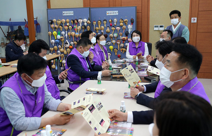 이어 의원들은 북치기 등 풍물체험을 통해 우리 국악을 직접 느껴보고 박첨지놀이 응원메시지를 담은 머그컵을 만드는 등 전수관에 준비된 시민 체험 프로그램에 참여했다.