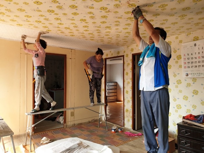 경기 포천시 영북면 지역사회보장협의체는 22일 지역내 장애인 취약가구를 대상으로 '주거환경개선사업'을 추진했다. 이날 협의체 위원 10여명은 도배 및 장판 교체, 전기배선 공사, 집청소 등을 진행했다. 사진은 관계자들이 도배하는 모습. (사진제공=포천시청)