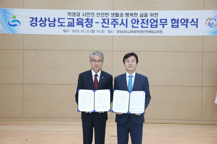 경상남도교육청(교육감 박종훈)은 진주시(시장 조규일)와 21일 경상남도교육청학생안전체험교육원에서 학생과 시민의 안전한 생활과 행복한 삶을 위한 업무협약(MOU)을 체결했다.