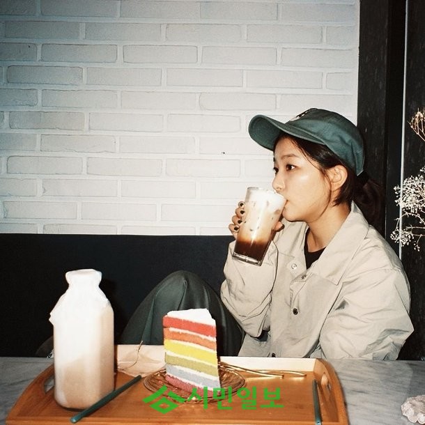 공개된 사진 속 슬기는 무지갯빛 케이크를 앞에 두고 음료를 마시고 있다. 청록빛 모자와 깔맞춤한 바지와 베이지색 상의가 슬기 특유의 사복 패션 센스를 돋보이게 한다. 특히 플래시를 터뜨린 듯한 필름 사진의 감성이 그의 일상을 더욱 매력적으로 전달한다.