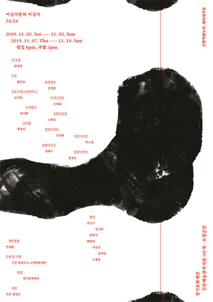 고양문화재단(대표이사 정재왈)과 극단 청년단(대표 민새롬)은 경기문화재단의 후원으로 11월 2일부터 11월 10일까지 고양아람누리 새라새극장에서 경기문화재단 전문예술창작지원 프로그램 3단계 초청공연, 이미지 연극 <24/24(이십사분의 이십사)>를 공연한다.