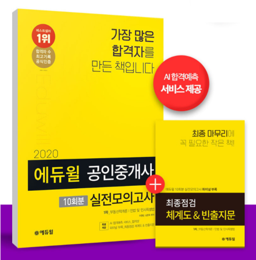 [시민일보 = 여영준 기자] 종합교육기업 에듀윌(대표 박명규)의 ‘2020 에듀윌 공인중개사 1차 실전모의고사 10회분’이 온라인서점 예스24의 공인중개사 부문 9월 3주차 베스트셀러 1위를 달성했다.