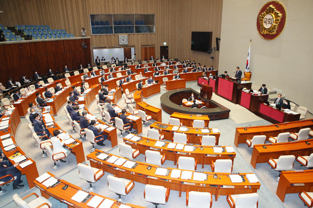 미래통합당 의원들이 불참한 가운데 30일 국회 예산결산특별위원회 전체회의에서 ‘2020년도 제3회 추경 예산안’에 대한 심사가 진행되고 있다.