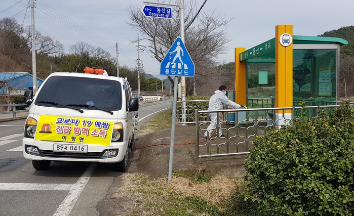 자가격리자가 살고 있는 마을 주민들의 불안감 해소를 위해 집주변과 마을 거주지 주변을 집중 소독하고 다중이용시설, 버스정류장 등 관내 취약지역을 대상으로 매일 소독작업을 시행하고 있다.
