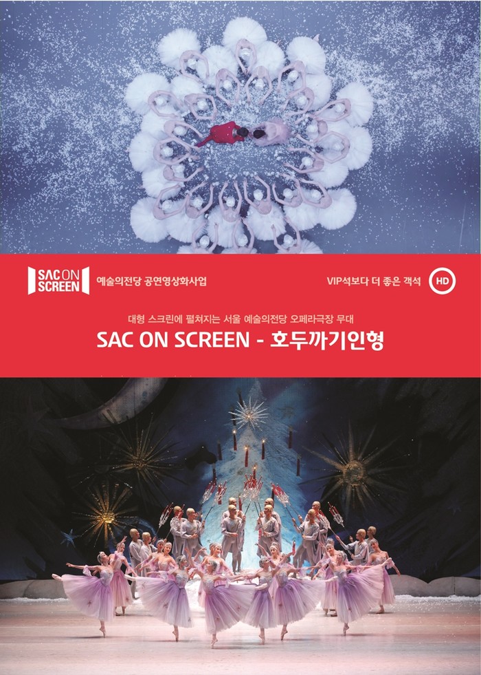 이번 SAC 영상 발레 ‘호두까기 인형’은 예술의 전당 공연 실황을 영상으로 편집해 스크린을 통해 감상하는 공연 영상화 사업으로, 차이콥스키의 웅장한 음악과 국립발레단의 고난이도 안무, 스펙터클한 구성, 매력적인 이야기를 통해 전 연령층을 환상적인 동화의 세계로 안내할 예정이다.