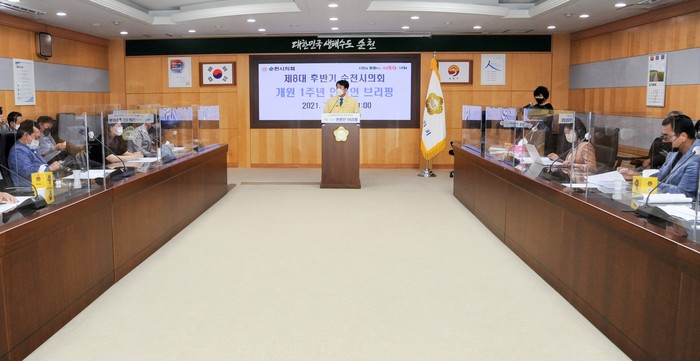 [순천=한행택 기자] 전남 순천시의회가 제8대 후반기 1주년을 맞아 지난 1일 순천시청 소회의실에서 언론 브리핑을 열었다.