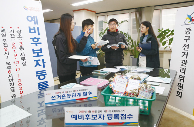 415 실시되는 21 총선 예비후보자 등록 개시일을 하루 앞둔 16 서울 중구 창경궁로 중구선거관리위원회에서 직원들이 예비후보 등록 준비 작업을 하고 있다.