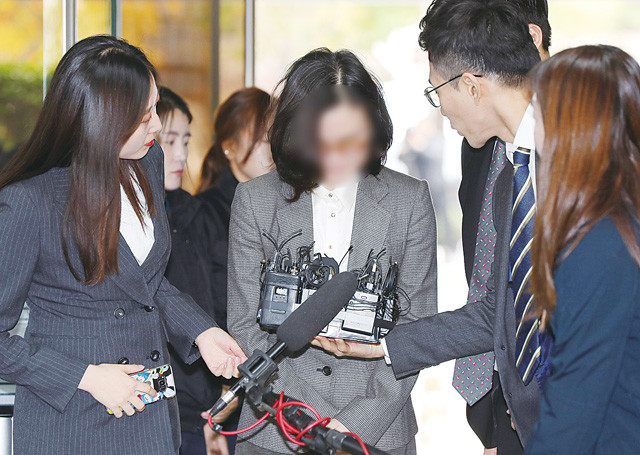 법무부 장관의 부인 정경심 동양대 교수가 23 오전 서울 서초구 서울중앙지법에서 열린 영장실질심사에 출석하기 위해 법정으로 향하고 있다.