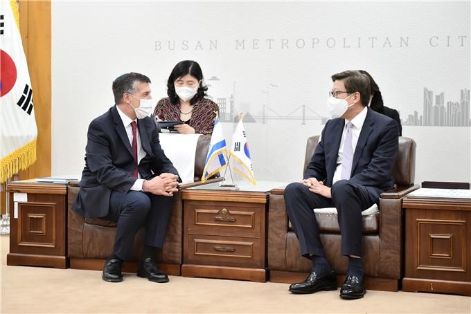 박형준 시장은 주한이스라엘대사를 만나 먼저 부산을 방문해 준 것에 대해 감사 인사를 전하며, “이스라엘의 지정학적 환경과 국정 운영 과정은 한국과 유사한 면이 많다고 생각하며, 한국과 이스라엘의 협력 강화는 세계 평화와 경제 발전에도 큰 도움이 될 것으로 기대한다”라고 말했다.