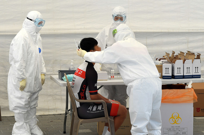 3일 서울 송파구 서울체육중고등학교에 설치된 코로나19 이동식 PCR 검사소에서 한 학생이 검사를 받고 있다. 교육부는 방역 당국과 협의해 서울 시내 11개 교육지원청별로 팀을 구성해 3일부터 서울시내 학교를 순회하면서 희망하는 교직원, 학생을 대상으로 검사를 진행한다.