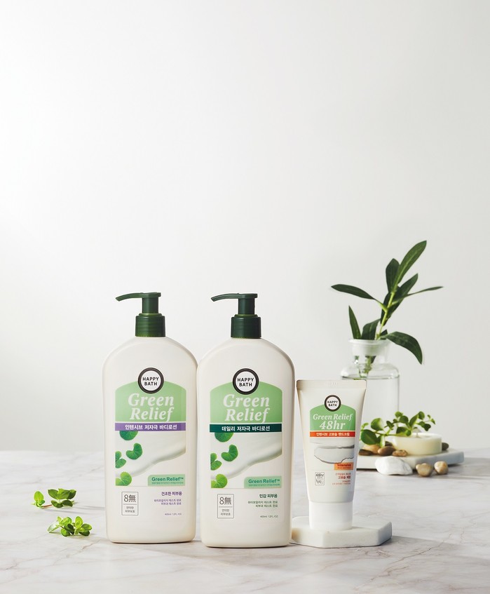 신제품 그린릴리프 ‘데일리 저자극 바디로션’과 ‘인텐시브 저자극 바디로션’은 하이포 알러지 테스트를 완료한 8가지 무첨가 제품으로 온 가족이 모두 편안하게 사용할 수 있다.