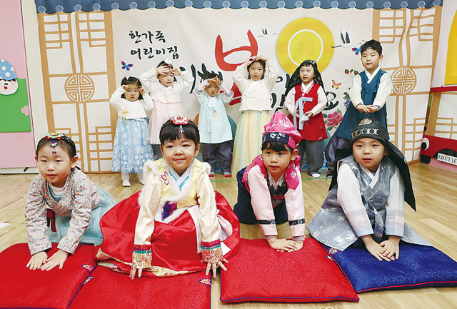 설을 앞둔 22일 오전 대전 중구청 어린이집에서 원생들이 세배하는 법을 배우고 있다.
