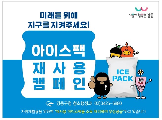 재사용 아이스팩이 필요한 주민은 강동구청 청소행정과로 문의하면 된다.