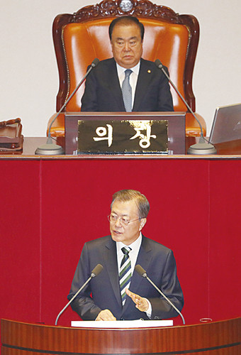 대통령이 22 오전 국회에서 내년도 예산안에 대한 시정연설을 하고 있다.