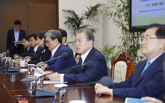 대통령이 7 오후 청와대에서 열린 수석·보좌관회의에서 발언하고 있다.