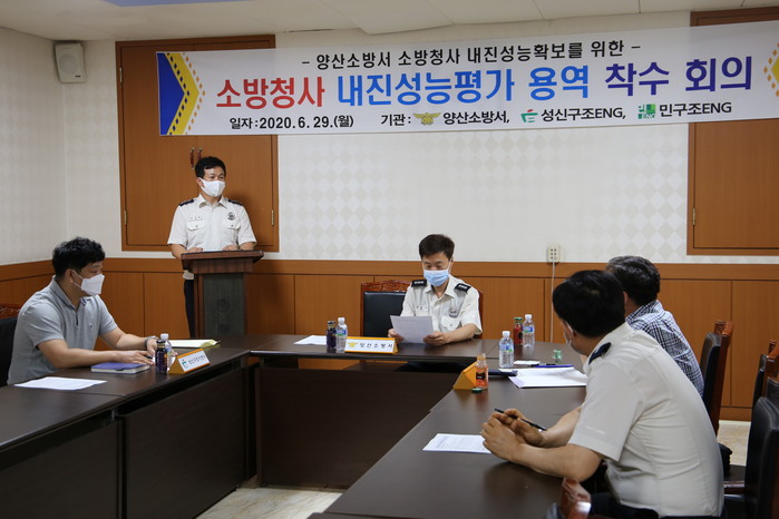 양산소방서(서장 김동권)는 29일 지진 재해 발생 시 피해를 최소화하고 안전한 청사 환경을 만들기 위한 청사 내진성능평가 용역 착수보고회를 실시하였다고 밝혔다.