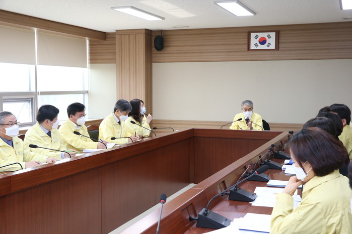 경남교육청은 17일 오후 교육감 주재 코로나19 대책 회의를 통해 담당부서별로 추가 개학 연기에 따른 분야별 후속 조치사항을 점검했다. 주요 점검 사항은 개학 준비 및 학습 공백 방지 대책으로 학교 방역 강화와 원격학습을 통한 학습 공백 방지, 긴급돌봄 지원, 마스크 등 방역물품 준비 상황 등을 점검했다.