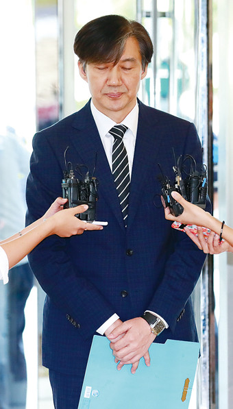 법무부 장관 후보자가 21 오전 인사청문회 준비 사무실이 마련된 서울 종로구 적선 현대빌딩으로 출근하며 불거진 의혹과 관련해 입장을 밝힌 눈을 감고 있다.