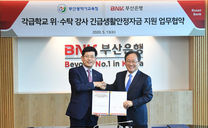 이번 업무협약을 통해 부산은행은 코로나19로 인한 초·중·고등학교의 개학 연기 장기화로 사실상 실직상태가 된 ‘위·수탁 강사’에 긴급생활안정자금 대출을 저금리로 지원하기로 했다.