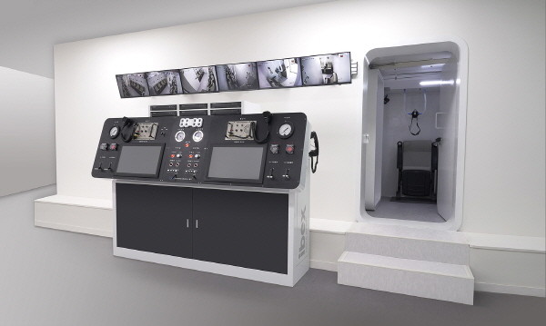 고압산소챔버를 제어하는 시스템 콘솔 (조작기)도 오퍼레이터의 편리성을 고려하여 주격실, 보조격실 대칭형 구조로 사용화하여 보다 직관적이고 단순화하여 디자인도 업그레이드됐다.