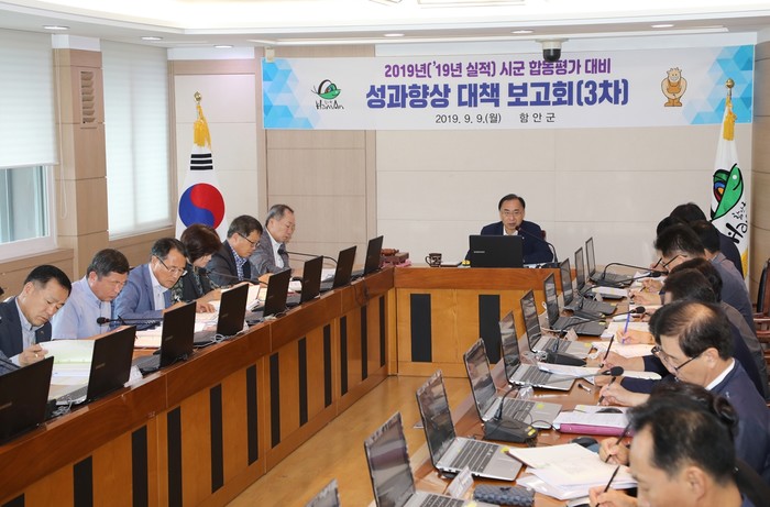 함안군은 9일 군청 2층 회의실에서 조웅제 부군수 주재로 2019년 시군 합동평가 성과 향상을 위한 3차 보고회를 가졌다