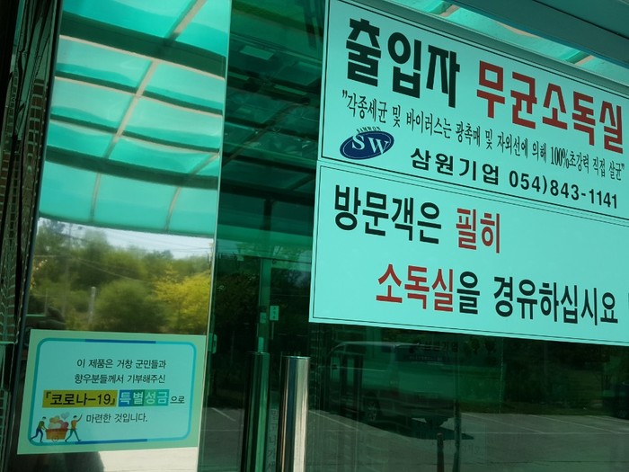 설치된 대인소독기는 UV-C 자외선과 적외선의 강력한 살균력으로 신발⸱옷⸱모자 등에 묻어 있는 각종 세균과 바이러스를 사멸시킬 수 있다.
