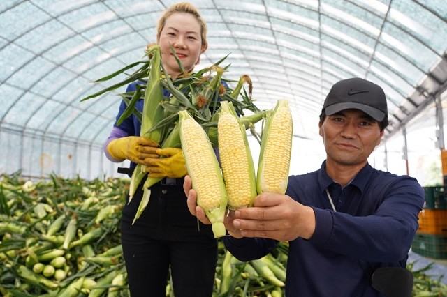 | ▲ 해남산 고 당도 옥수수를 수확해 소개하고 있는 농민 / 사진=해남군 제공 |