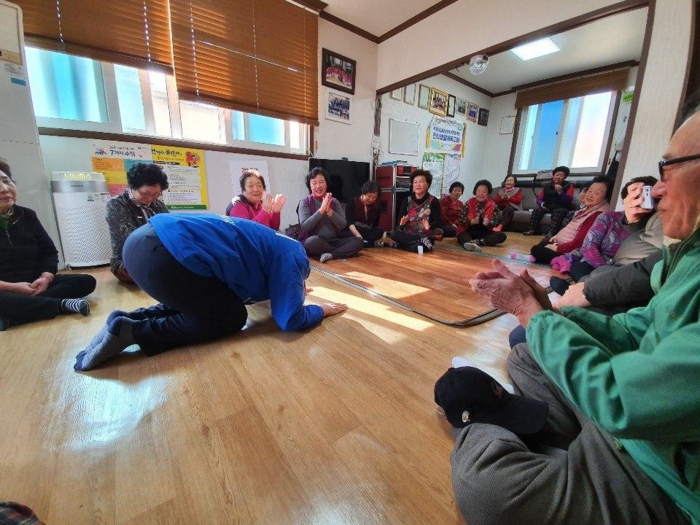 | (사진제공=김원이 후보 사무실)더불어 민주당 김원이 목포지역 국회의원 예비후보 내외가 목포관내22개 경로당을 찾아 어르신들께 큰절을 올렸다. |