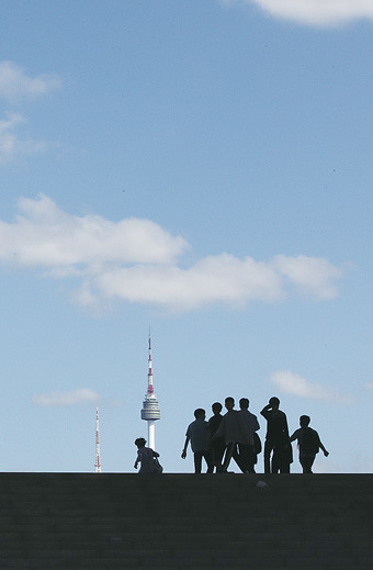 지나간 화창한 날씨를 보인 23 오전 서울 용산구 국립중앙박물관을 견학 학생들이 계단 위를 걸어가고 있다.