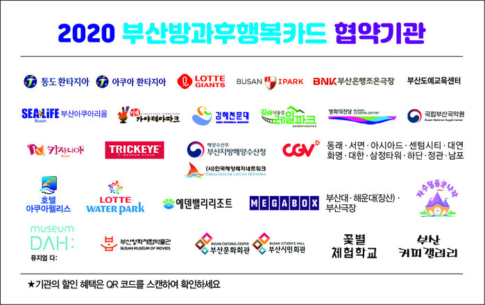 부산시교육청은 오는 2월 5일 오후 3시30분 시교육청 제1회의실에서 뮤지엄 다, CGV(삼정타워점, 정관점, 하단점, 남포점), 메가박스(부산대점, 해운대(장산)점, 부산극장점), 부산지방해양수산청, 한국해양레저네트워크 등 9곳의 체험기관과 ‘부산방과후행복카드 협약’을 체결한다.