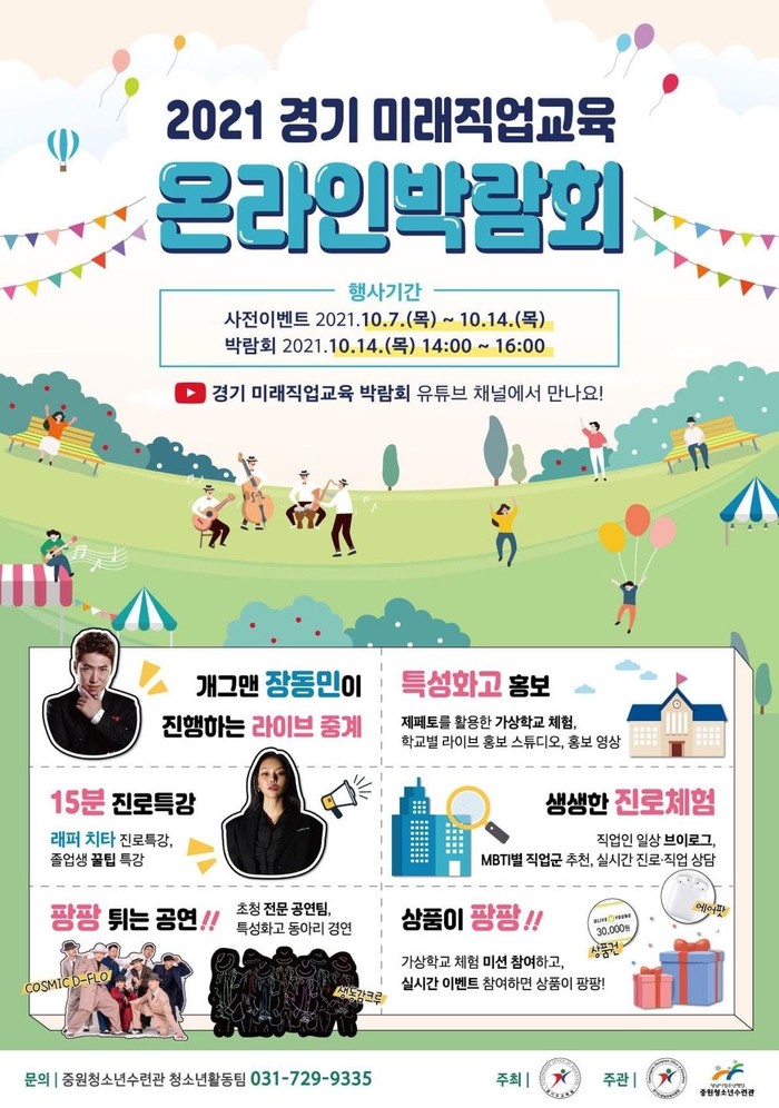 경기도교육청이 주최하고 성남교육지원청과 성남시청소년재단이 주관하는 이번 성남권역‘경기 미래직업교육 박람회’는 유튜브 채널을 통해 온·오프라인 하이브리드 형식으로 운영된다.