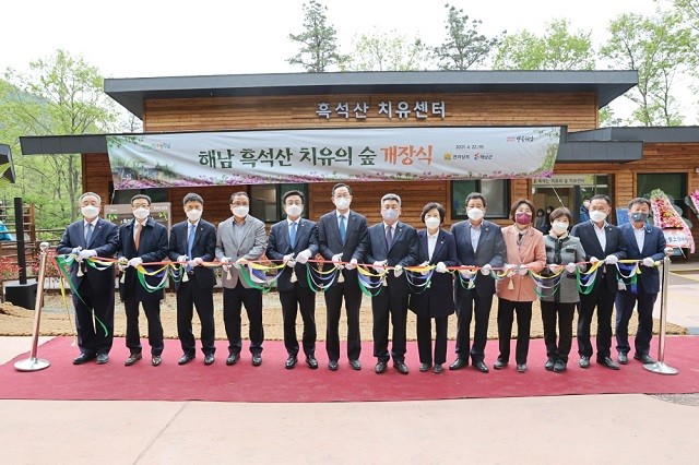 [해남=정찬남 기자] 전남 해남군이 계곡면 소재 흑석산 자연휴양림 치유의 숲을 22일 개장했다.