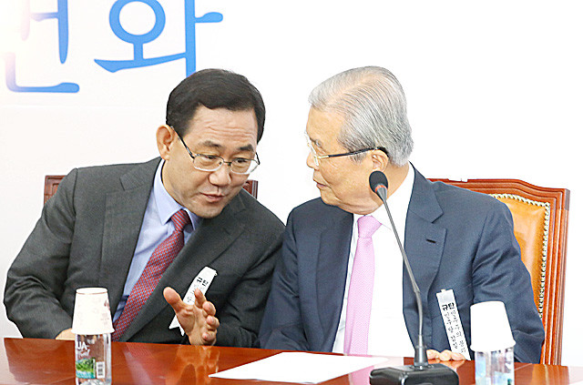미래통합당 김종인 비상대책위원장, 주호영 원내대표가 6일 국회에서 열린 비상대책위원회에 참석해 논의하고 있다.