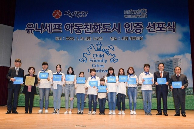 광주시는 31일 시청 대회의실에서 유니세프 아동친화도시 인증 선포식을 개최했다.