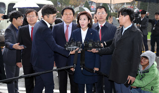 나경원 원내대표가 13 ‘패스트트랙 충돌’ 사건과 관련해 검찰에 출석했다. 지난 4 국회에서 관련 사건이 발생한 7개월 만이다. 원내대표는 이날 오후 2시께 서울남부지검에 도착해 취재진에게 “공수처와 비례대표제를 통해 권력을 장악하려는 여권의 무도함에 대해서 역사가 똑똑히 기억하고 심판할 것”이라며 “대한민국의 자유민주주의, 의회민주주의를 저와 자유한국당은 반드시 지켜낼 것”이라고 말했다.