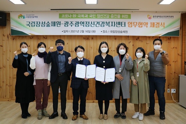 | ▲ 국립장성숲체원-광주광역정신건강복지센터 업무협약 / 사진= 광주광역시 제공 |