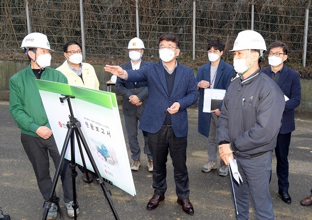 | ▲ 김종효 광주광역시 행정부시장이 5일 오후 양과동 광역위생매립장 2-2단계 조성사업 현장을 방문해 관계자로부터 추진현황 보고를 받은 후 안전시공을 당부하고 있다./광주광역시 제공 |
