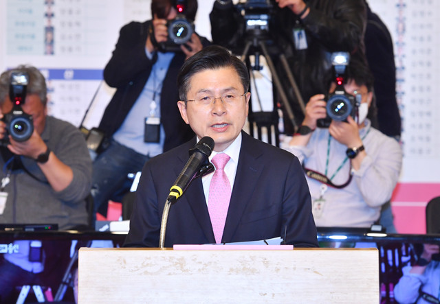 제21대 총선에서 패배한 미래통합당 황교안 대표가 15일 국회도서관 강당에 마련된 미래통합당-미래한국당 개표상황실에서 사퇴를 밝히고 있다.