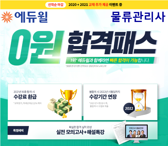 [시민일보 = 여영준 기자]종합교육기업 에듀윌(대표 박명규)이 물류관리사 시험 대비 ‘0원 합격패스’ 과정을 선보인다.