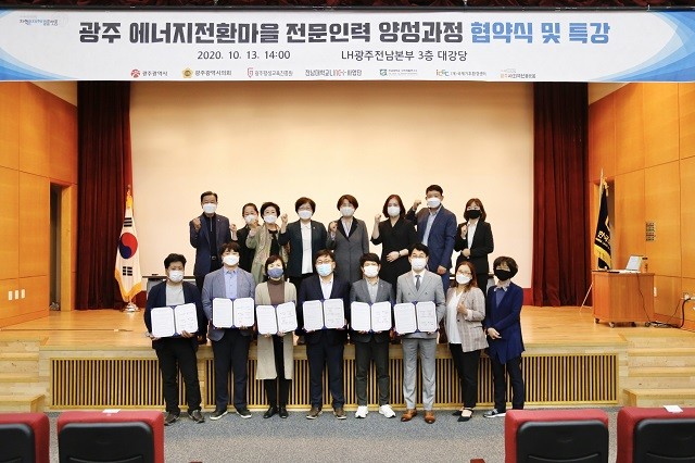 | ▲ 광주 에너지전환마을 전문인력 양성과정 협약식 기념촬영 / 광주광역시 제공 |