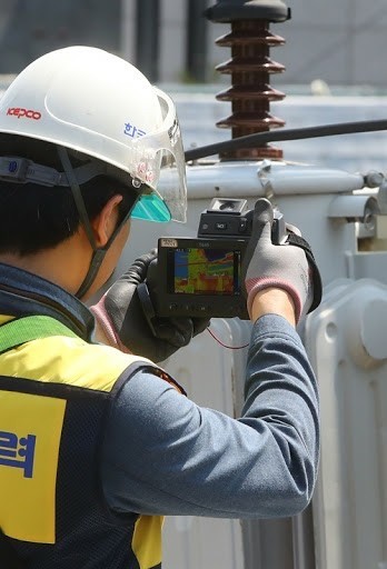 | ▲ 한국전력 직원이 열화상 진단장비를 활용하여 전력설비를 진단하는 모습.(사진제공=한전) |