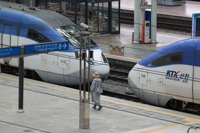 전국철도노동조합이 11일 오전 9시~14일 오전 9시 3일간 한시 파업을 벌인다. 철도노조가 파업에 들어가면 KTX와 새마을호 등 여객열차와 화물열차가 20∼60%가량 감축 운행될 수밖에 없어 이용객 불편과 수출업계의 업무 차질이 우려된다. 사진은 10일 오후 서울역에 대기 중인 열차.