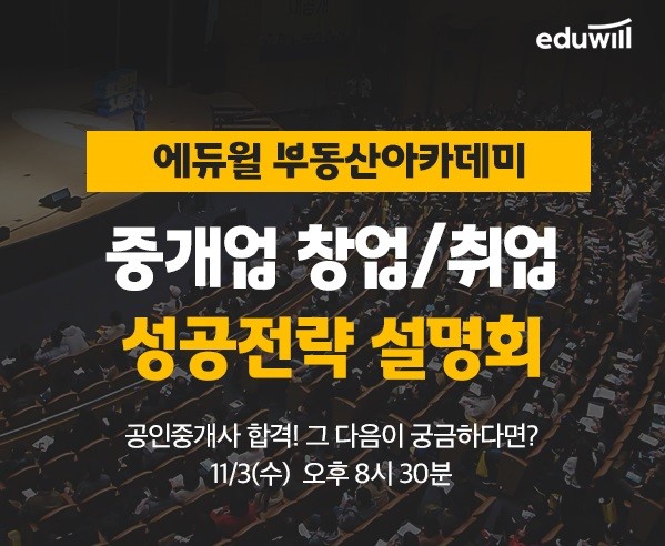 에듀윌 부동산아카데미 중개업 창업·취업 성공전략 설명회에 대한 보다 자세한 에듀윌 부동산아카데미 홈페이지에서 확인 가능하다.