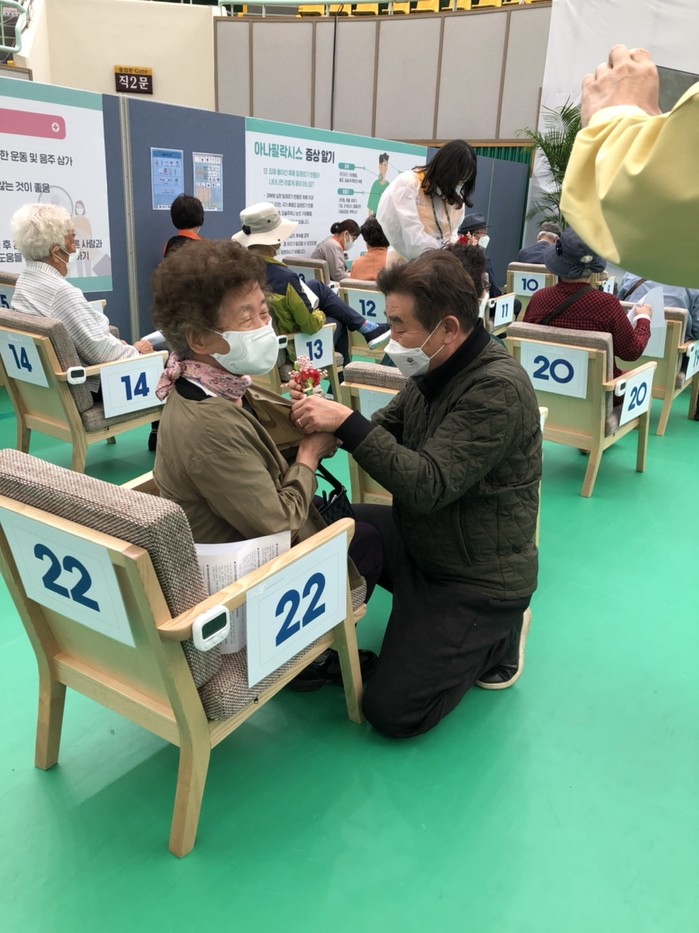 시는 어버이날을 맞아 백신 접종을 위해 접종센터를 방문한 어르신들을 위해 카네이션을 준비하고, 어르신들의 건강 기원과 코로나 종식을 염원하는 시민들의 응원의 손편지를 전시했다.