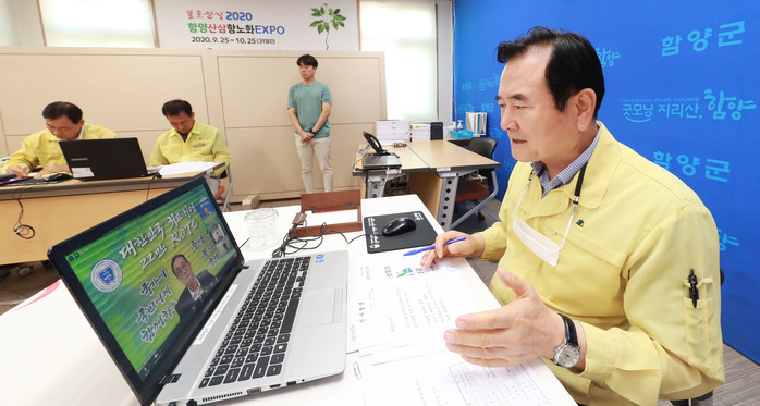 이날 화상회의는 지난 7월 함양군, ROTC중앙회, 엑스포 조직위원회 간 상생발전을 위한 업무협약을 체결 이후 후속조치 논의를 위한 것으로 함양군에서는 서춘수 군수를 비롯하여 행정과장과 농산물유통과장이, ROTC중앙회에서는 박진서 회장을 포함한 임원 등 관계자 7명이 참석한 가운데 진행됐다.