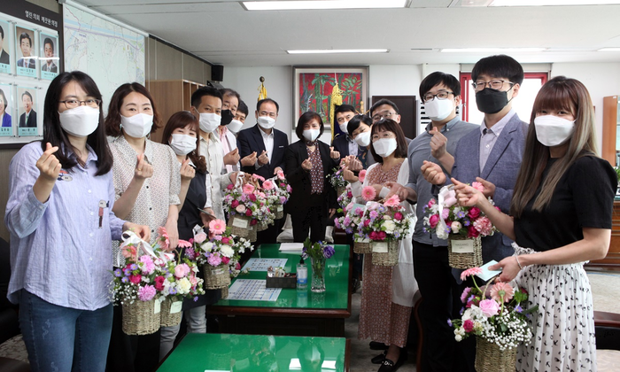 [인천=문찬식 기자] 김유순 인천 계양구의장이 최근 ‘부부의 날’을 맞아 의회사무국에 근무하는 직원들에게 사랑의 꽃바구니를 선물했다.