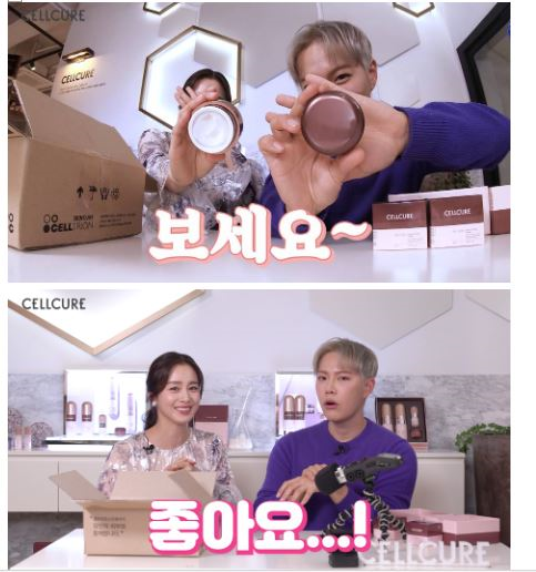 셀트리온스킨큐어의 공식 유튜브 계정을 통해 14일 공개된 영상에서 김태희는 인기 유튜버 레오제이와 함께 언박싱에 도전했다.